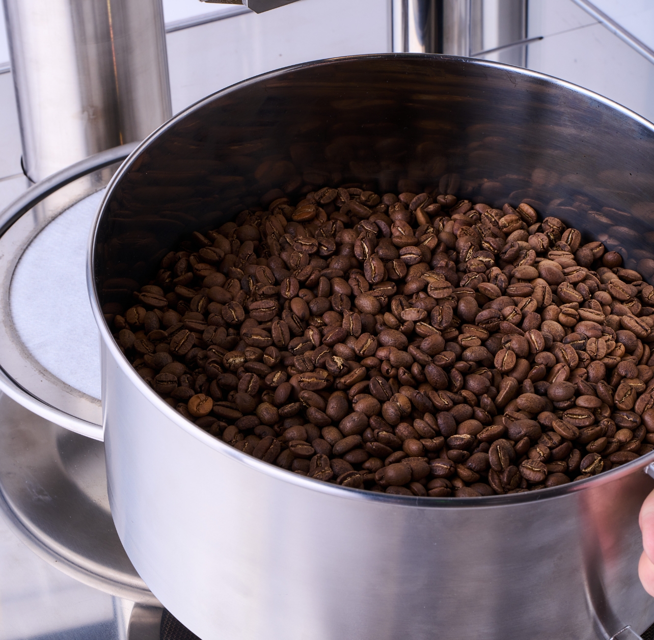 Because the beans are stirred by hot air, the heat is evenly transferred all the way to the center. This makes uneven roasting due to bean size far less likely. Even if there are slight differences in appearance, the inside is always thoroughly roasted—this is a key characteristic of hot-air roasting.